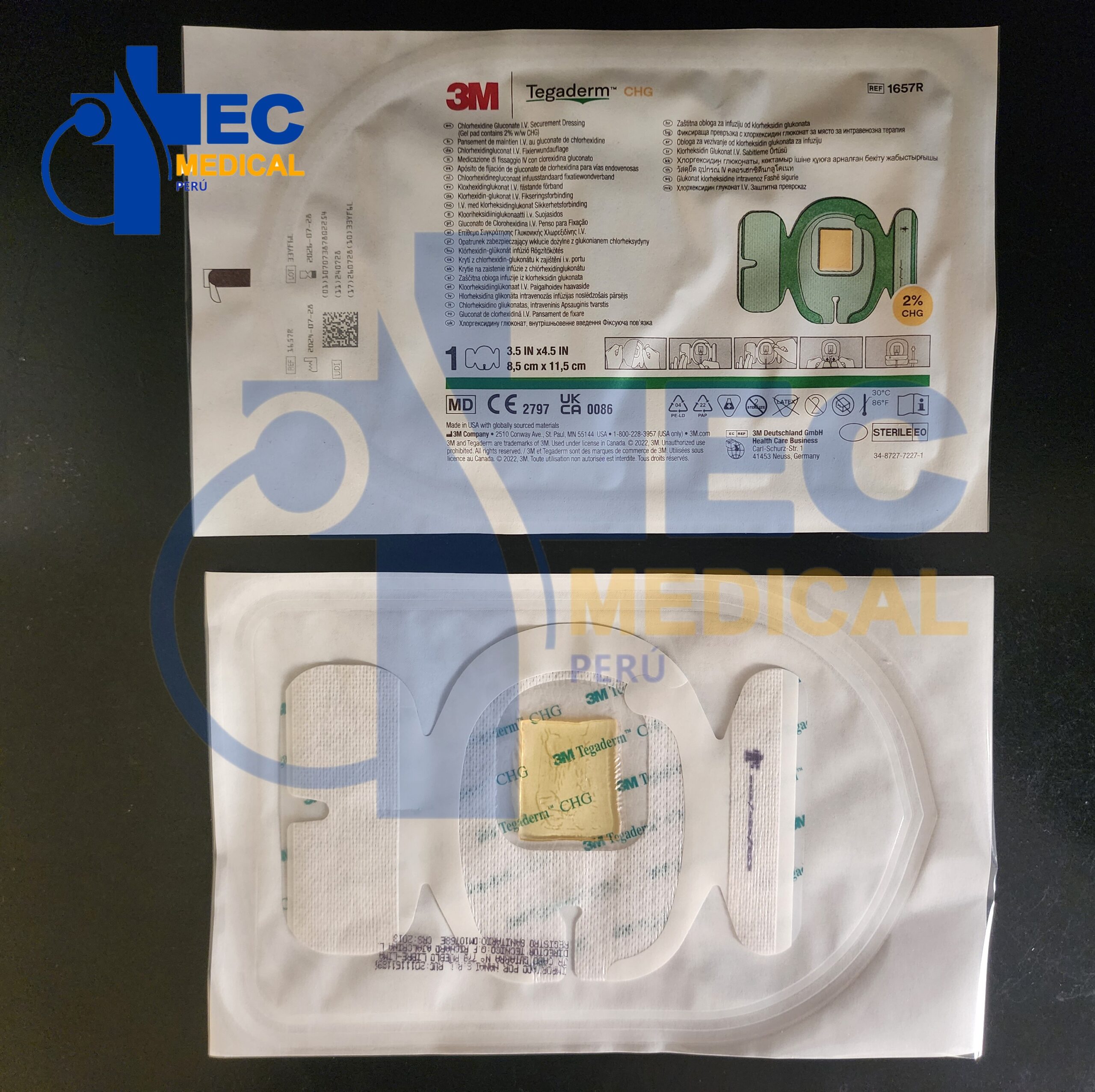 Este tipo de apósito combina las propiedades protectoras y transparentes de un apósito Tegaderm estándar con las propiedades antimicrobianas de la clorhexidina. Se utiliza en situaciones en las que se necesita mantener una herida protegida y al mismo tiempo reducir el riesgo de infección. Estos apósitos con clorhexidina son particularmente útiles en situaciones de alto riesgo de infección o en heridas crónicas que son propensas a infecciones.